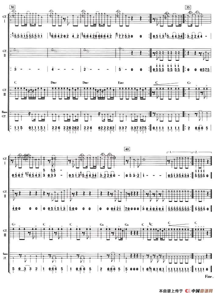 樱桃树下(电吉他四重奏)相关五线谱