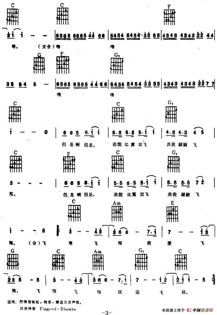 飞翔飞翔我飞翔(电子琴吉他弹唱谱)