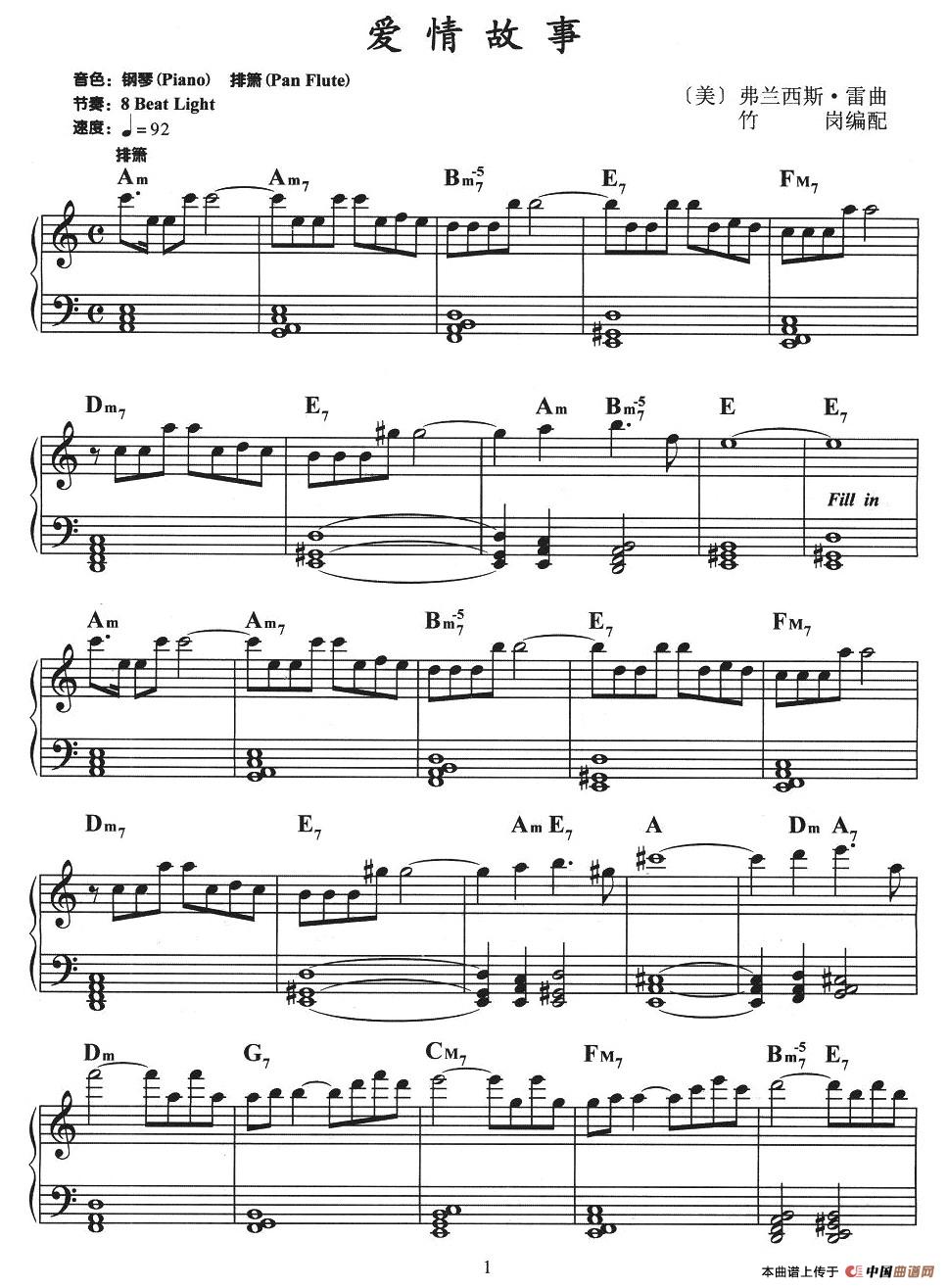 爱情故事相关五线谱