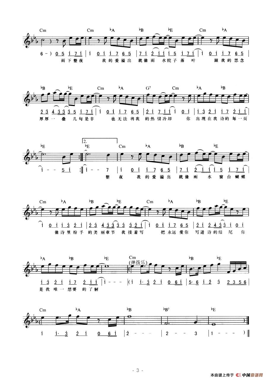 偏偏喜欢你(线简混排弹唱谱)