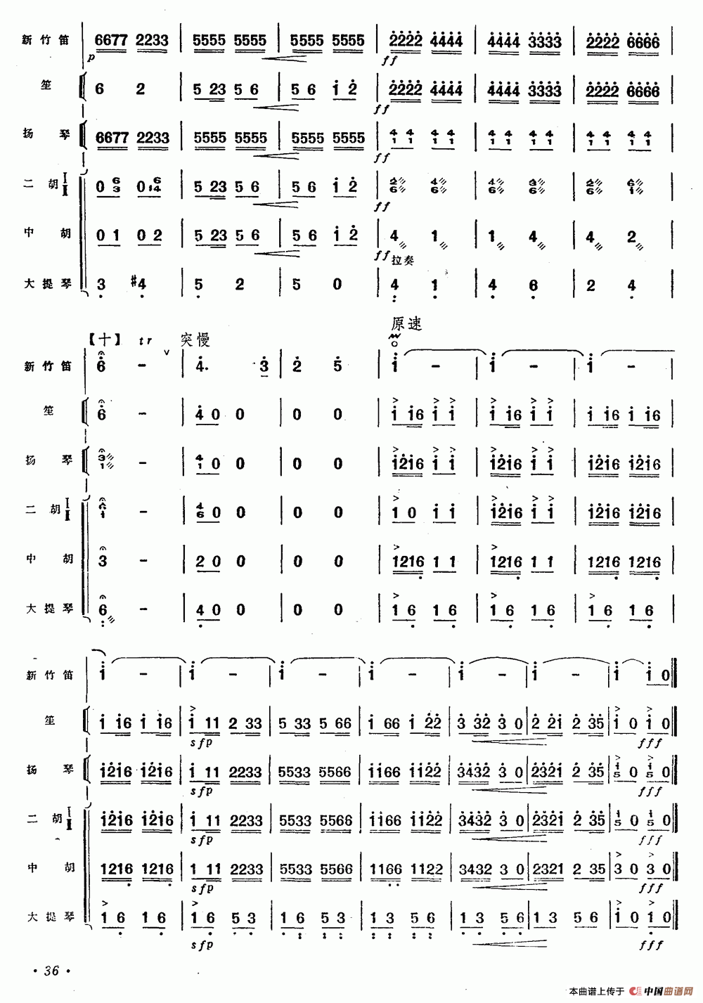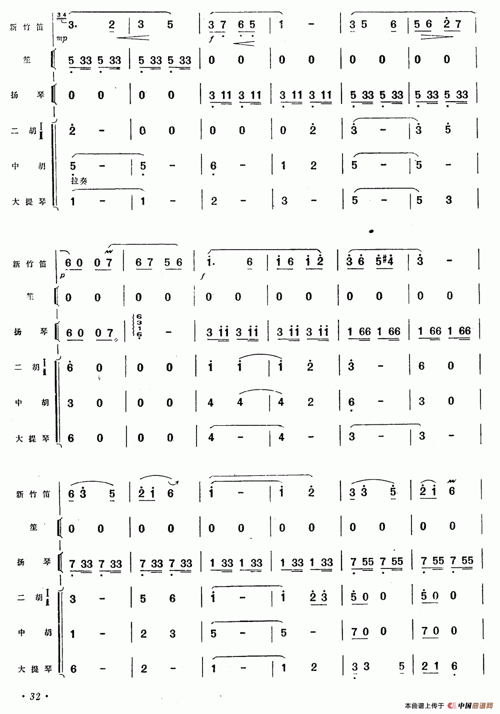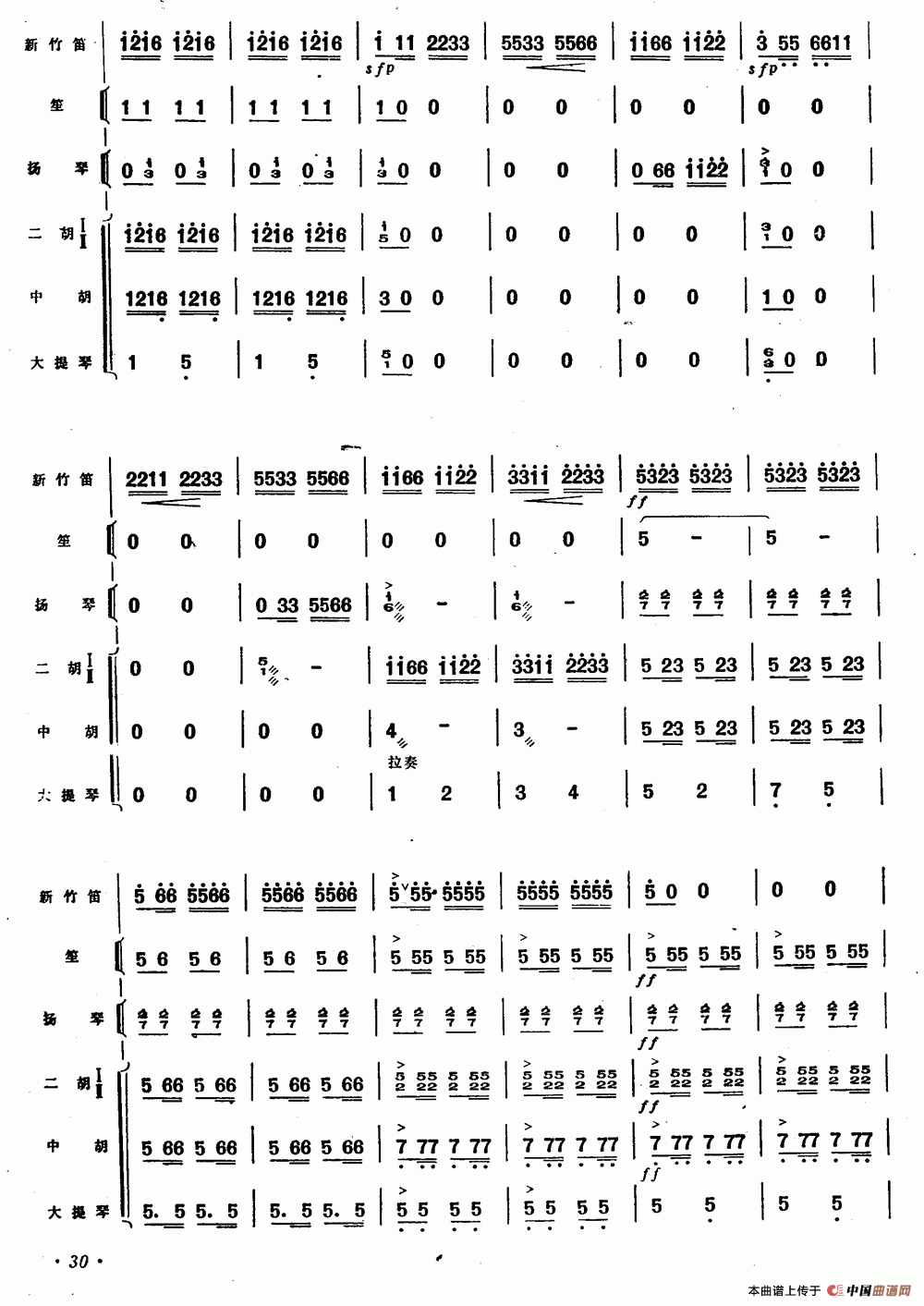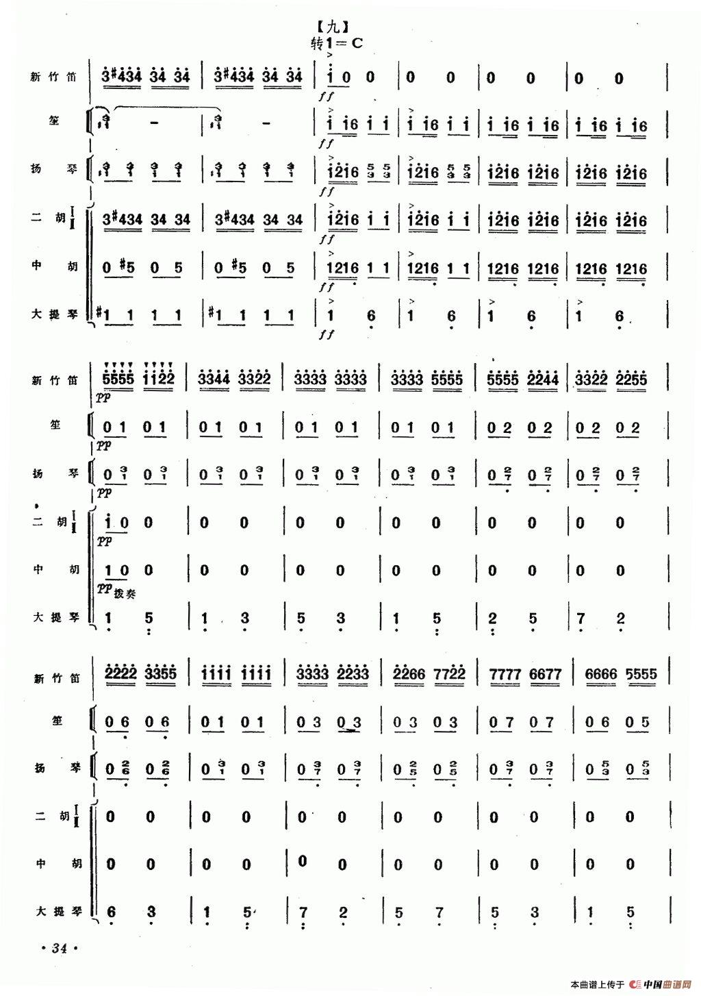 在希望的田野上(新竹笛+乐队伴奏)相关五线谱