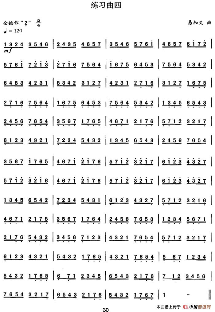 长笛练习曲100课之第37课 (三个音平均)