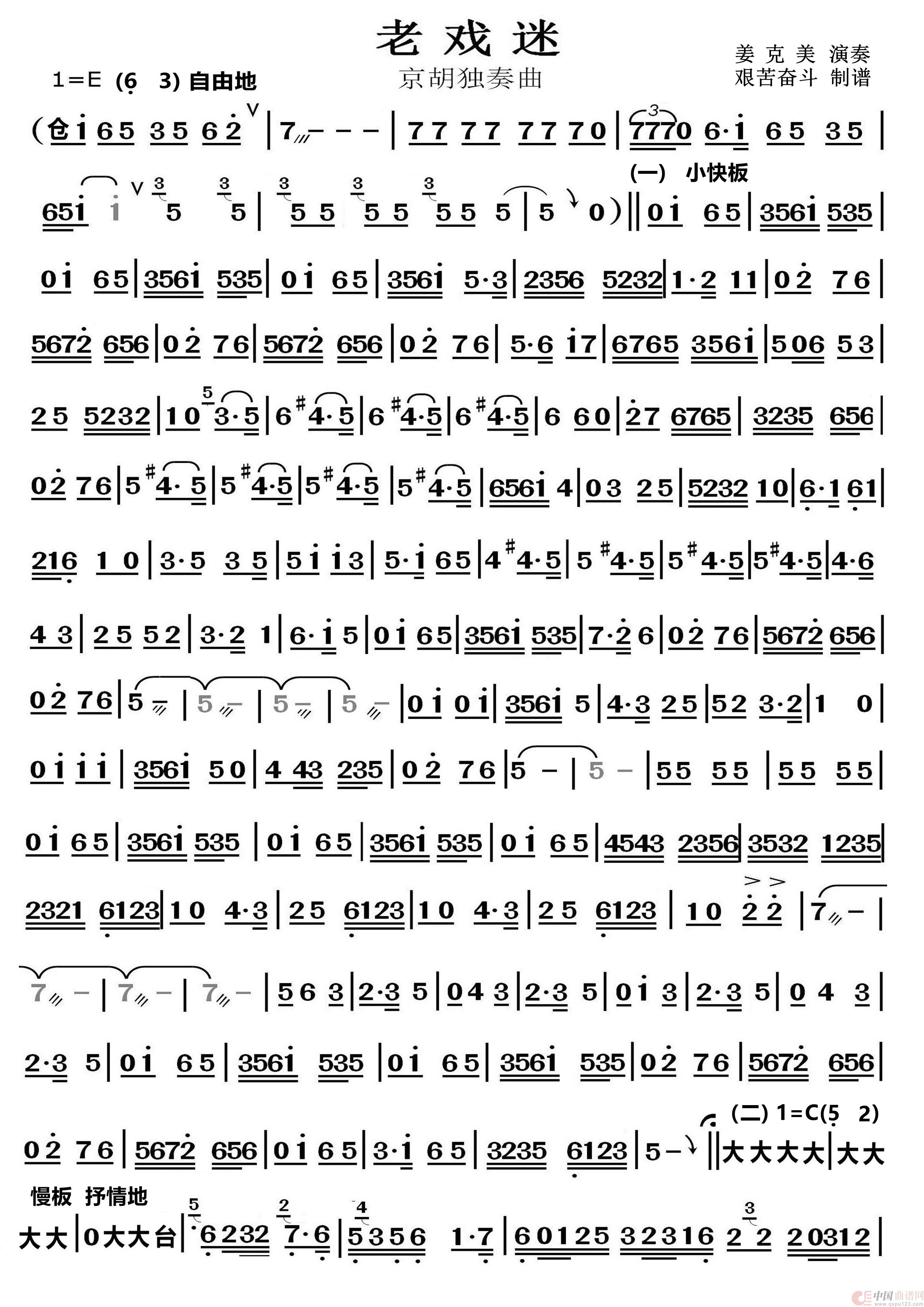 老戏迷(京胡独奏曲)相关五线谱