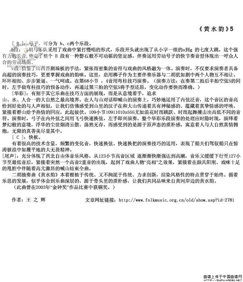 黄水韵相关五线谱