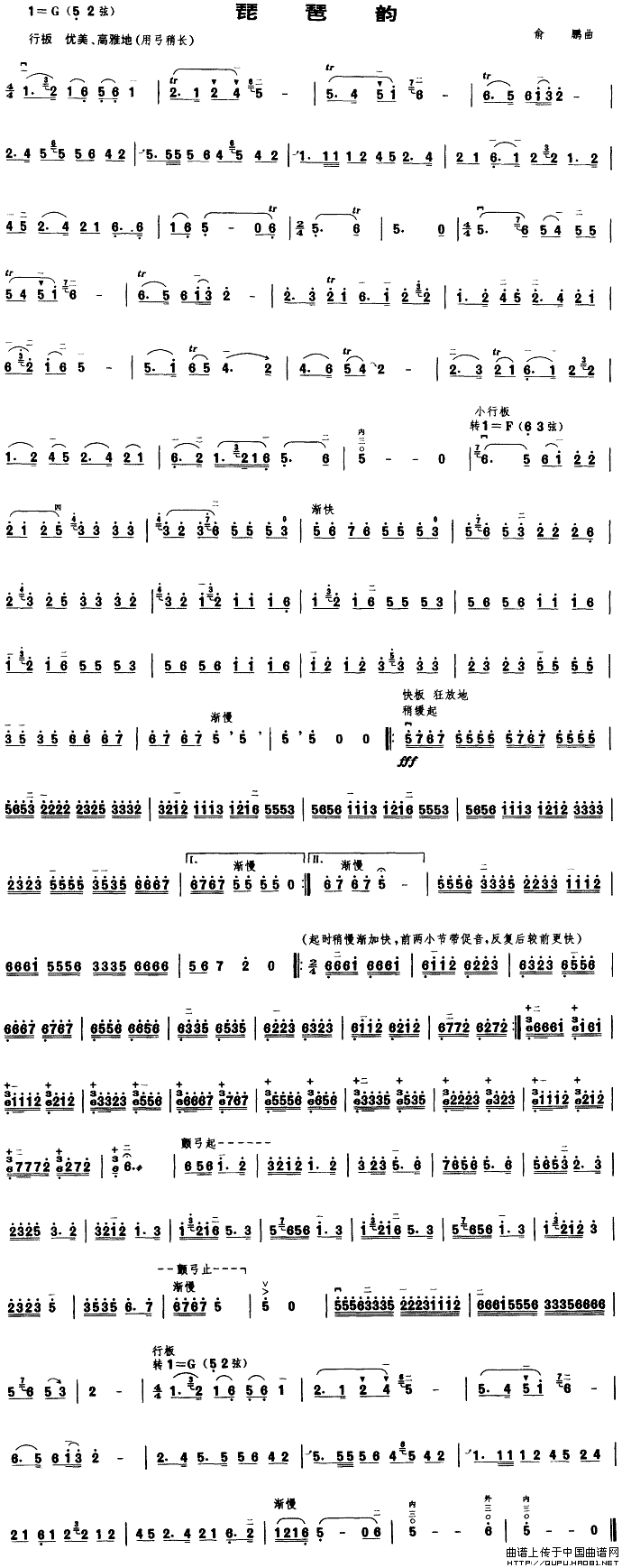 琵琶韵相关五线谱
