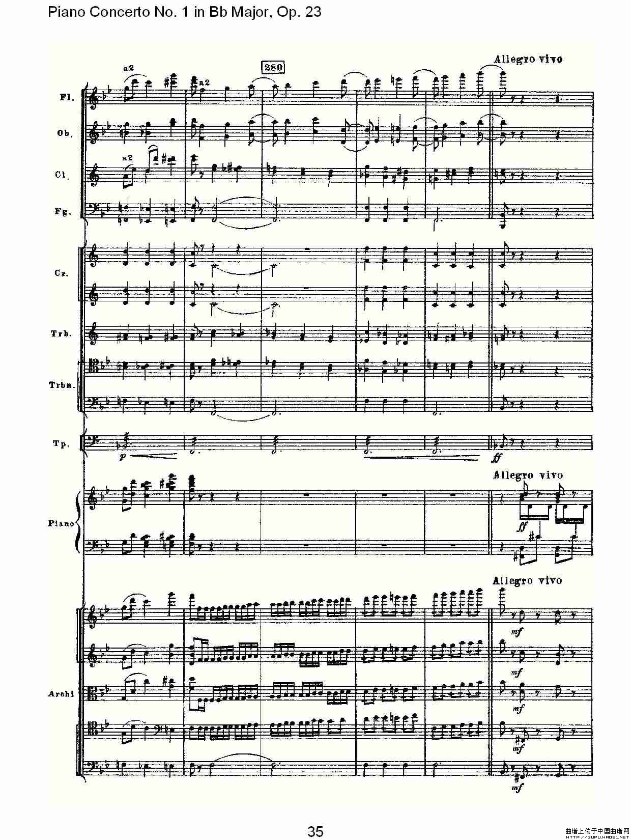 Bb大调第一钢琴协奏曲,Op.23第三乐章(二)相关五线谱