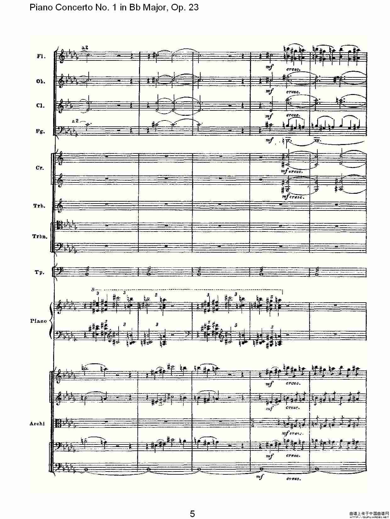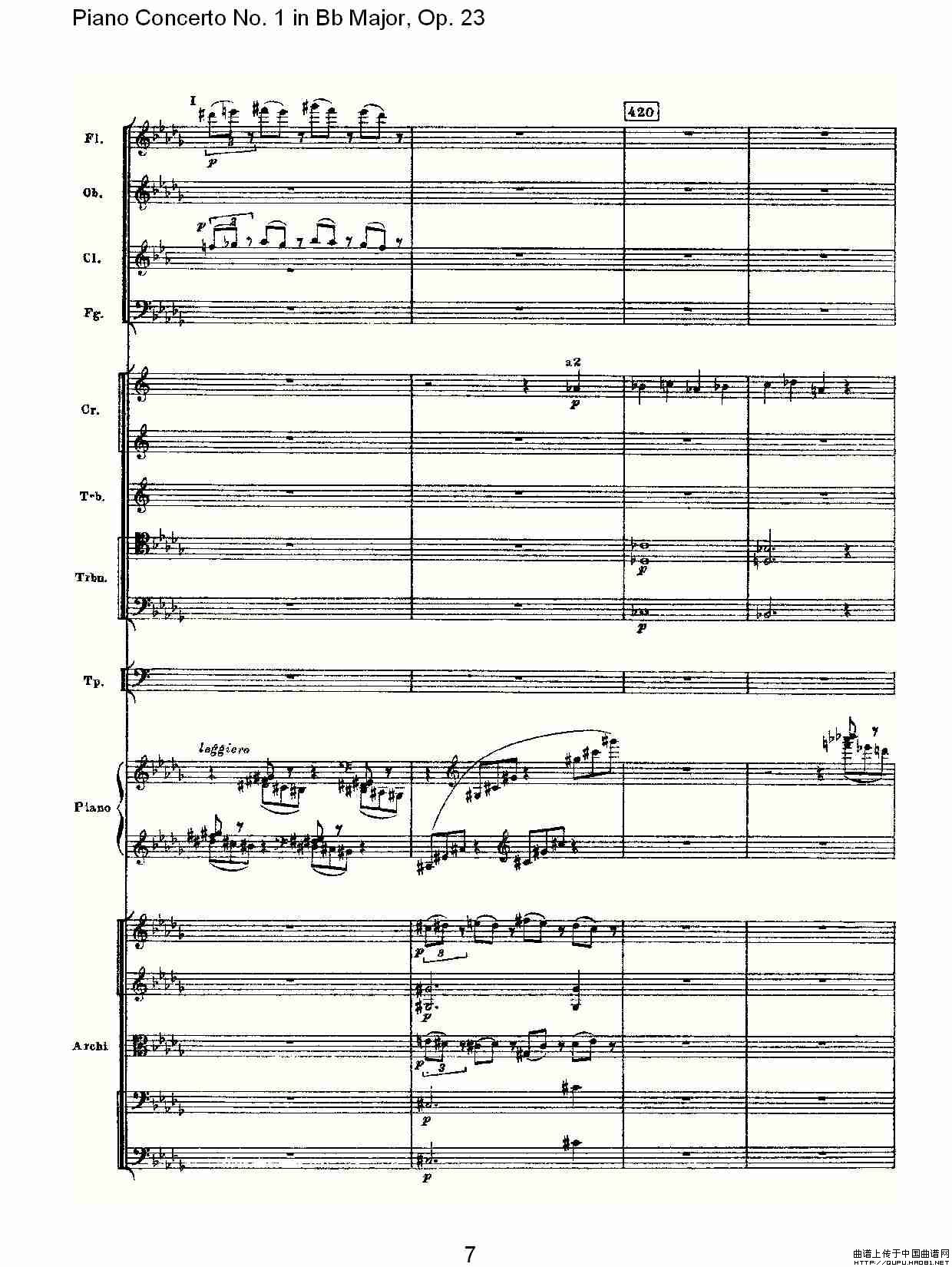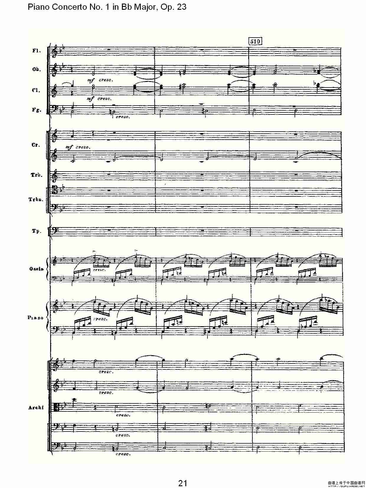 Bb大调第一钢琴协奏曲,Op.23第一乐章第二部(一)相关五线谱