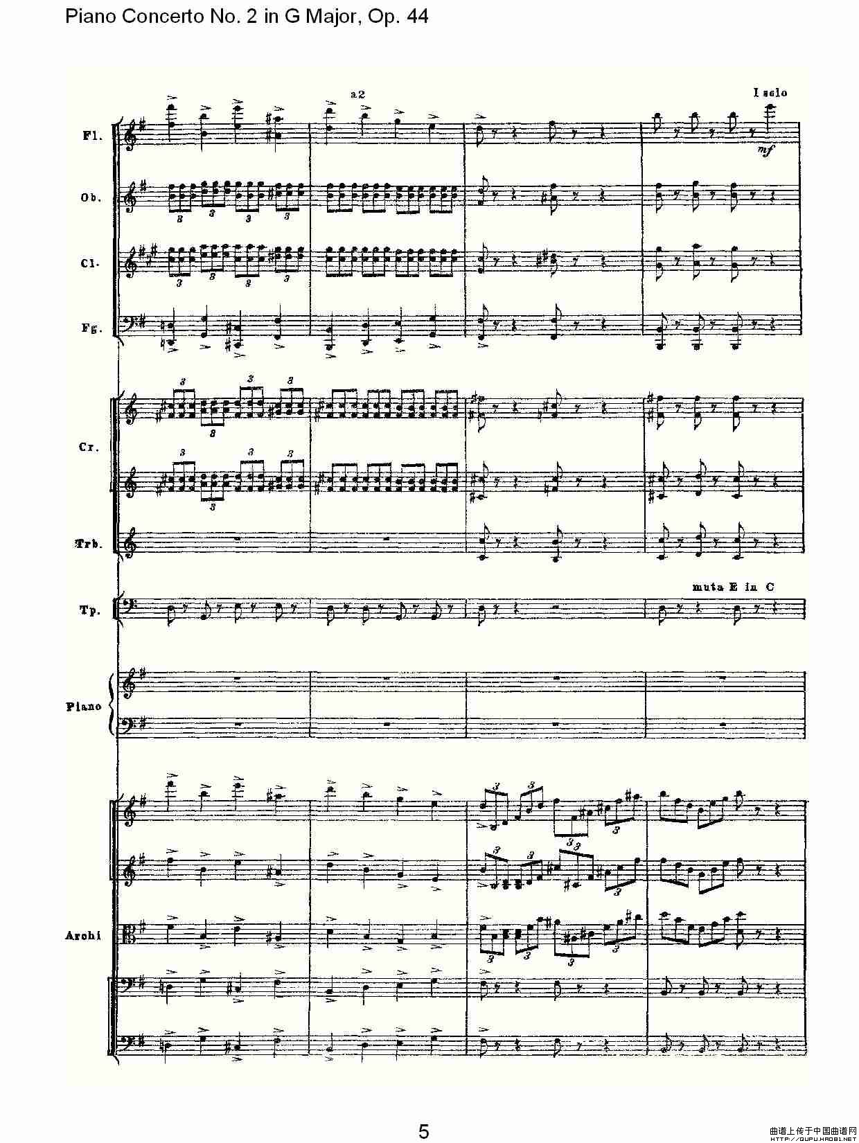 G大调第二钢琴协奏曲, Op.44第一乐章(一)相关五线谱