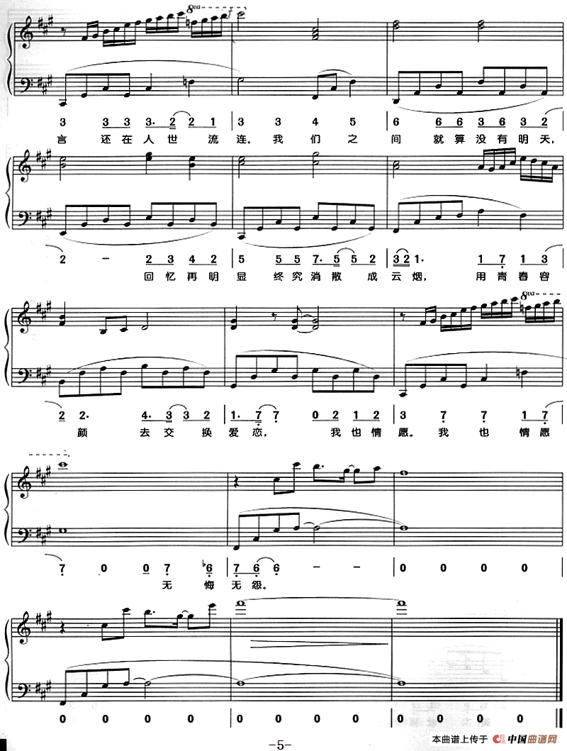 就算没有明天(钢琴弹唱)相关五线谱