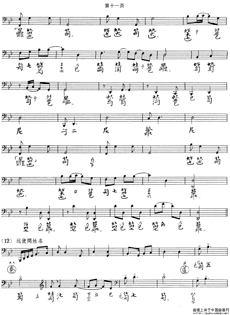 大胡笳(古琴谱 五线谱+减字谱)相关五线谱
