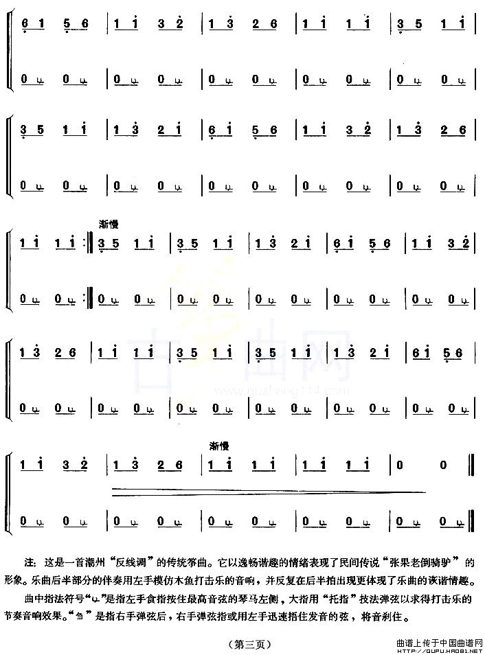 倒骑驴(【上海筝会】考级四级曲目)相关五线谱
