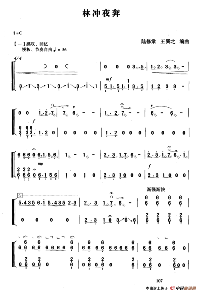 林冲夜奔(【上海筝会】考级十级曲目)相关五线谱