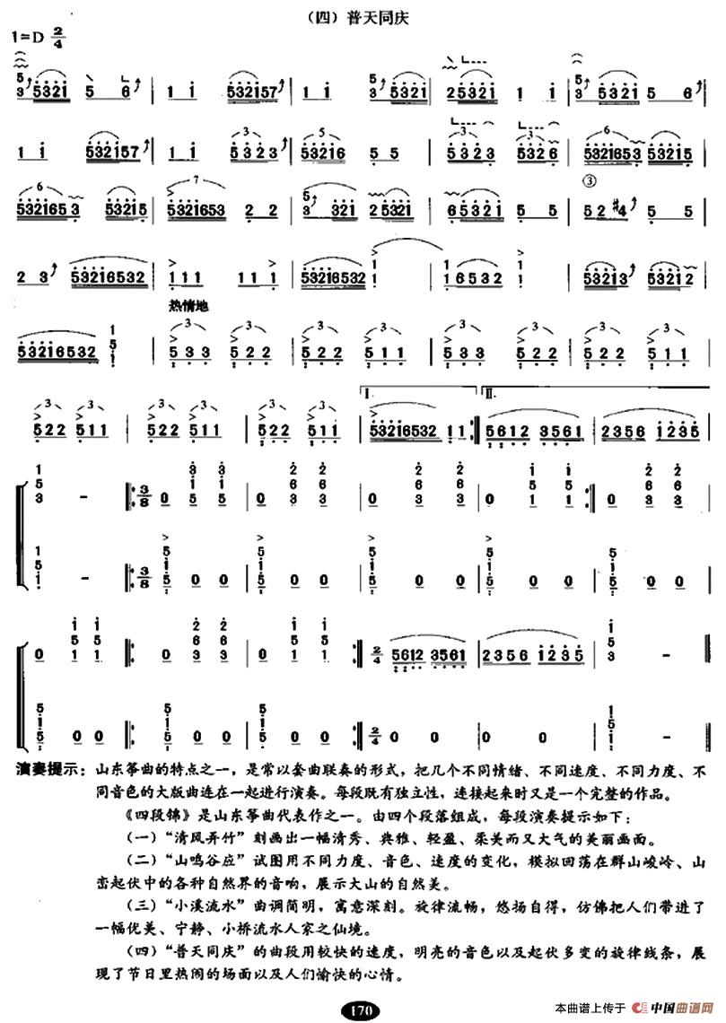 四段锦(【上海筝会】考级九级曲目)相关五线谱