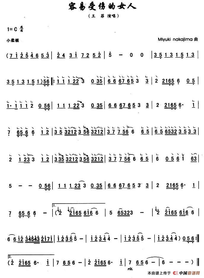 容易受伤的女人相关五线谱