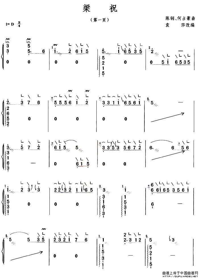 梁祝(袁莎改编版)相关五线谱