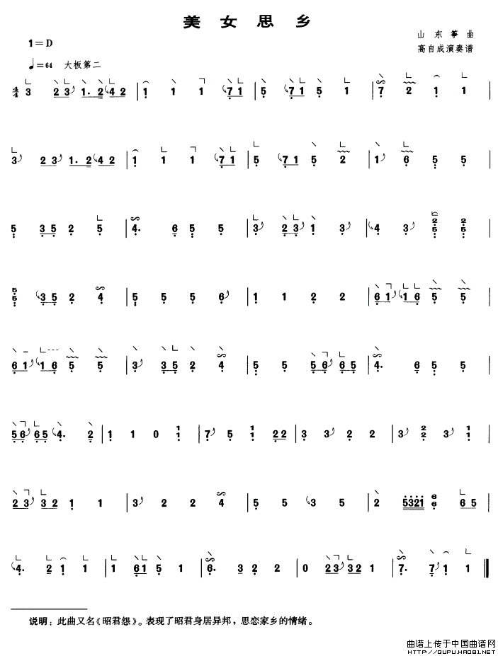 美女思乡相关五线谱