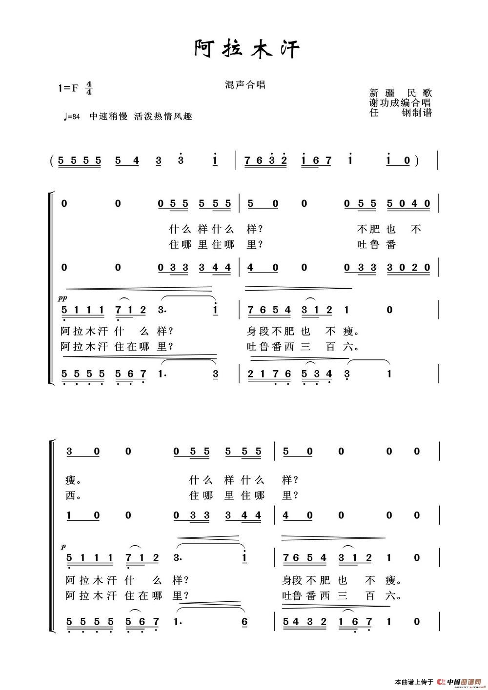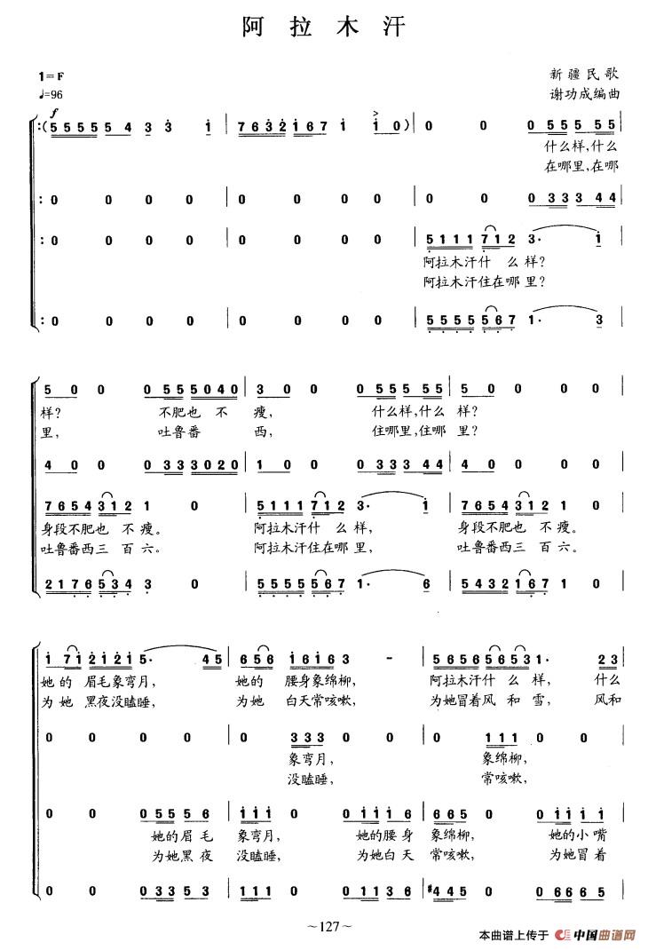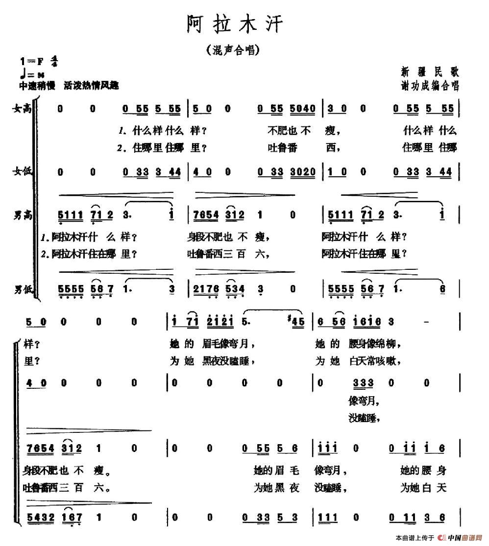 阿拉木汗(维吾尔族民歌)相关五线谱
