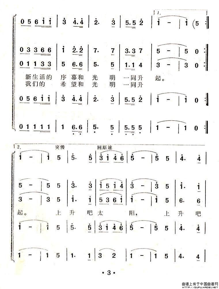 国旗和太阳一同升起相关五线谱
