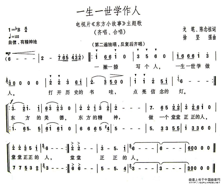 一生一世学做人(电视片《东方小故事》主题歌)相关五线谱