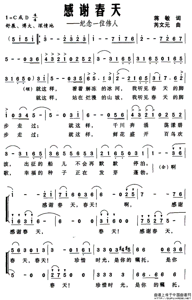感谢春天——纪念一位伟人相关五线谱