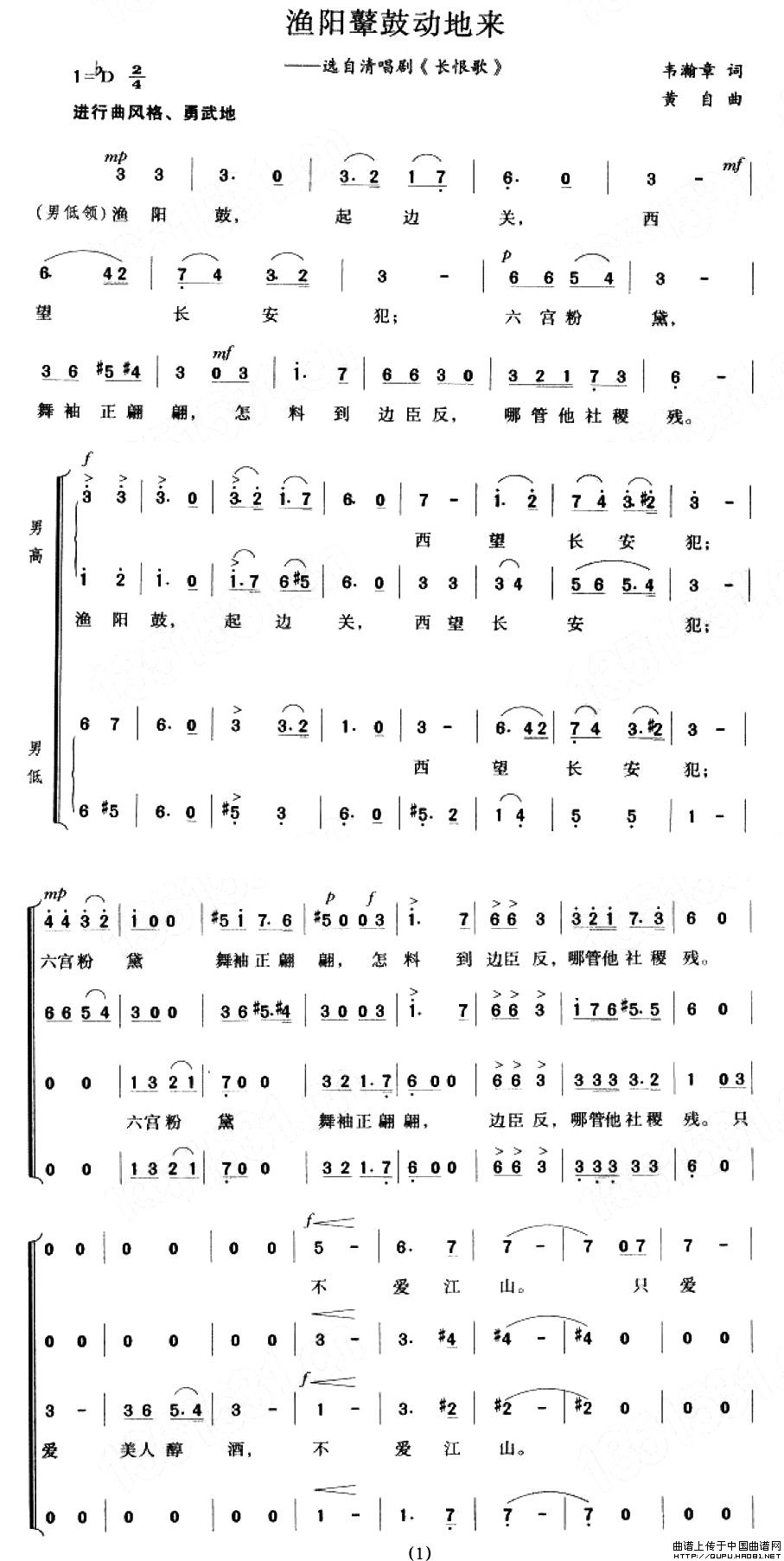 渔阳鼙鼓动地来(选自清唱剧《长恨歌》)相关五线谱