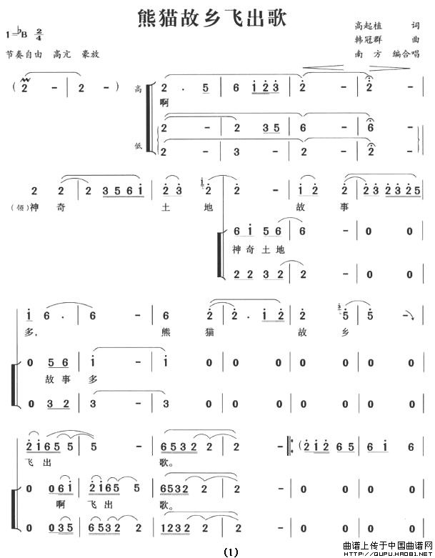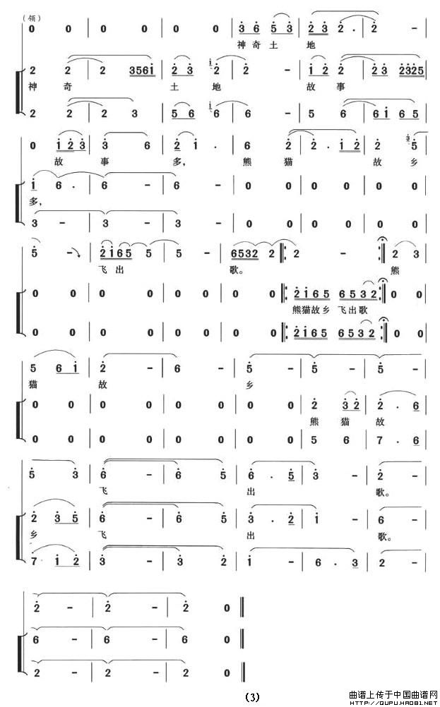 熊猫故乡飞出歌相关五线谱