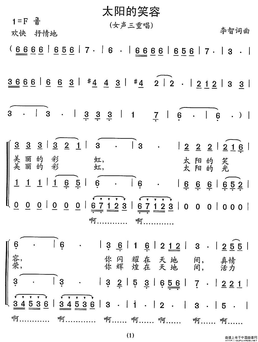 李智曲谱推荐真诚(刘斌词 李智曲)美丽青春(歌舞组合)小河边(李智 词曲)雄起四川月亮望成小竹篮为青春喝彩(吕永清词 李智曲)香格里拉(李智词曲)拽太阳妈妈的姜(简谱)早安,大森林(《熊出没》片尾曲)山东,我为你歌唱梦的苏州终会与你同行(电影《熊出没之过年》片尾曲)家乡的路开封小唱亲爱的妈妈(电影《母亲》主题歌)兔耳兰庄严的承诺(李智词 李智曲)平安家园 平安中国雪中情(前世词 默契李智曲)