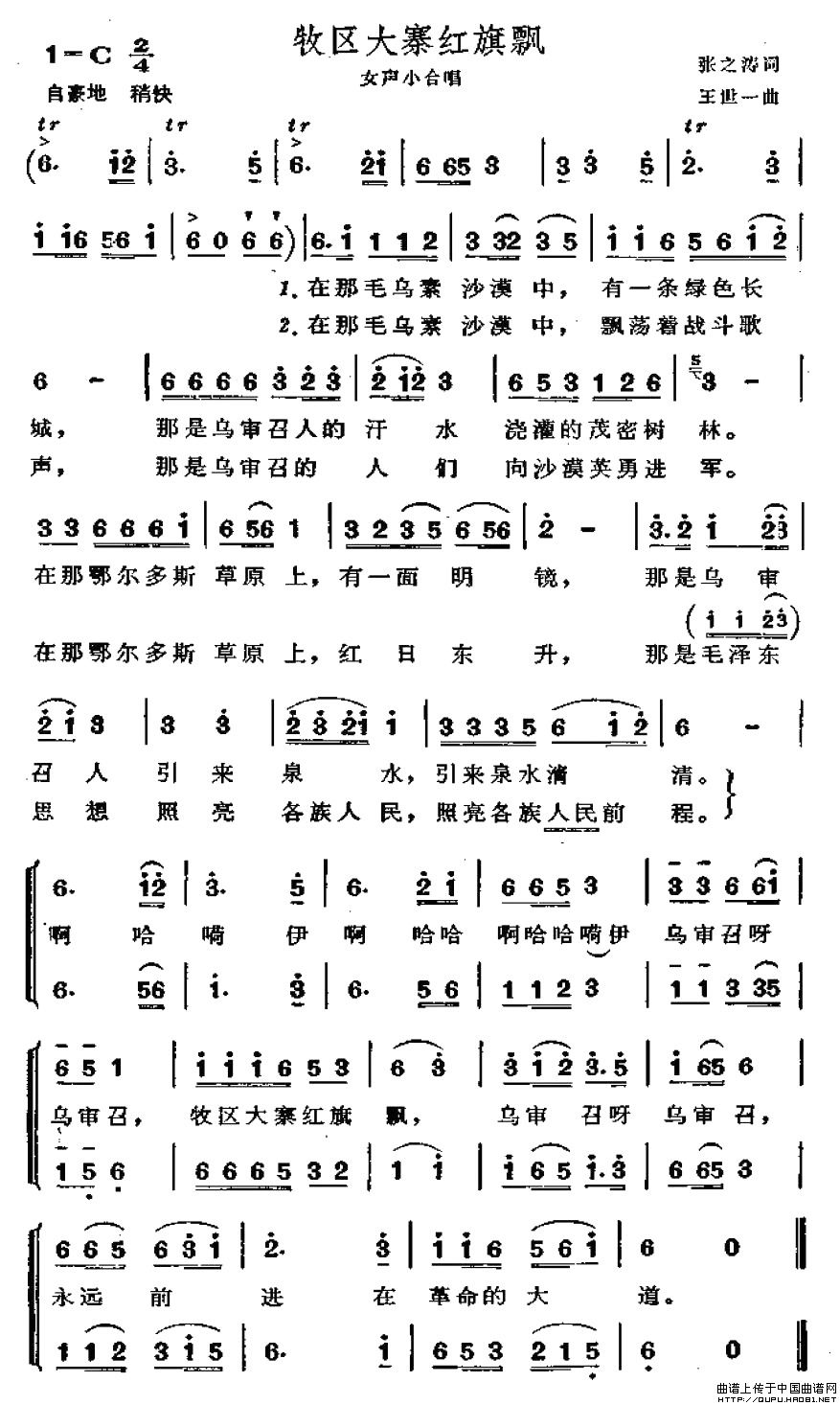 牧区大寨红旗飘(女声小合唱)相关五线谱
