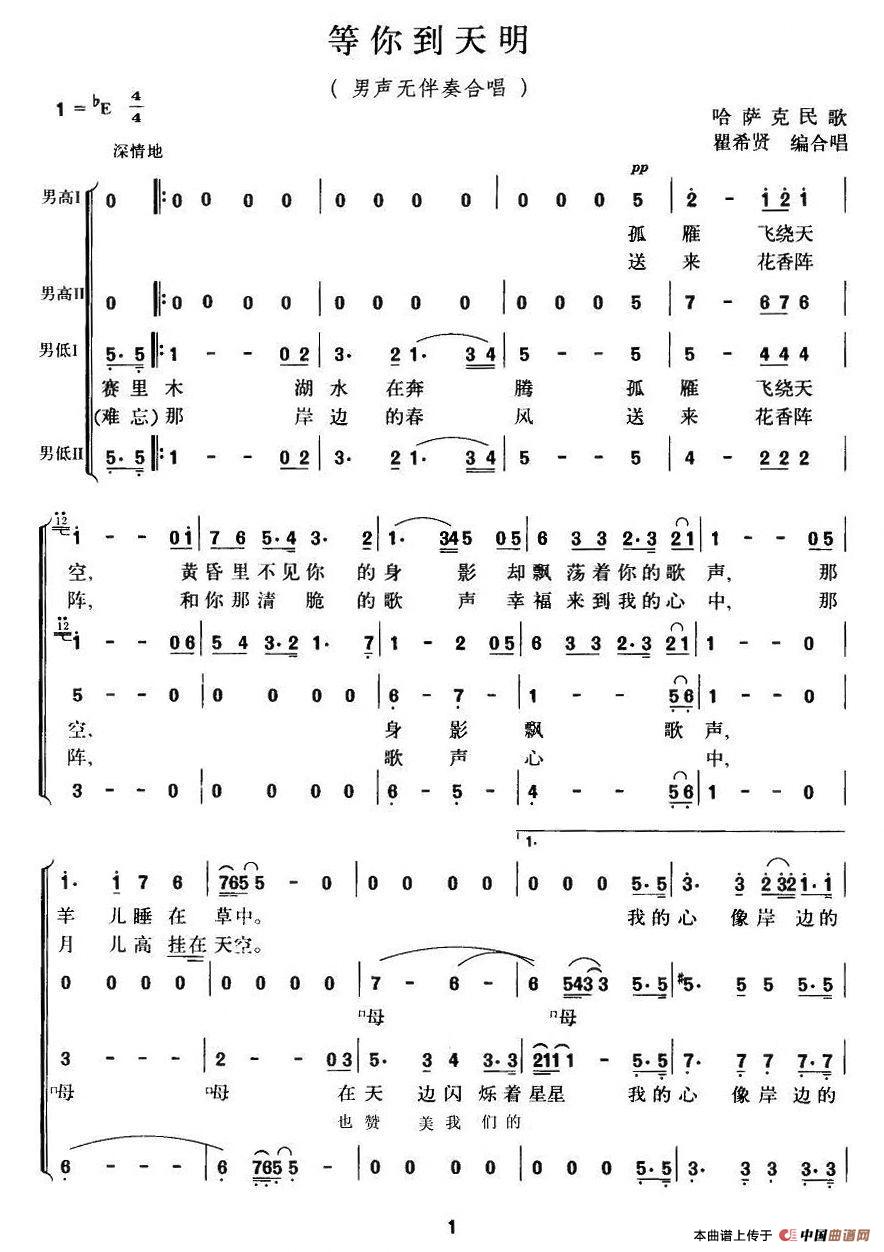 等你到天明(瞿希贤编合唱版)相关五线谱