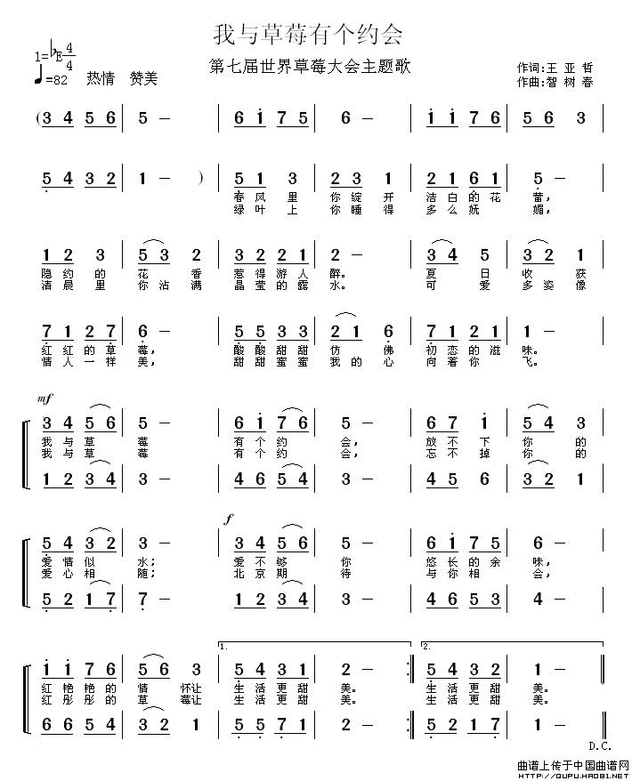 智树春曲谱推荐人民不会忘记(王小雅词 智树春曲)中华一家亲(石顺义词 于立京 智树春曲)江南古镇(华也词 智树春曲)孤独,但不寂寞祖国给我理想燃烧的夏天我的故乡在海岛黄昏恋曲青春中华我和祖国(王小雅词 智树春曲)我们奉献爱(何铃领词 智树春曲)真情在人间(张希武词 智树春曲)春雨濛濛我们都是“红米饭”情在山沟沟(李严词 智树春曲)你有一颗金子心(献给丛飞的歌)让世界充满爱(张效密词 智树春曲)报到(李严 词 智树春曲)初恋(张效密词 智树春曲)祖国给我理想