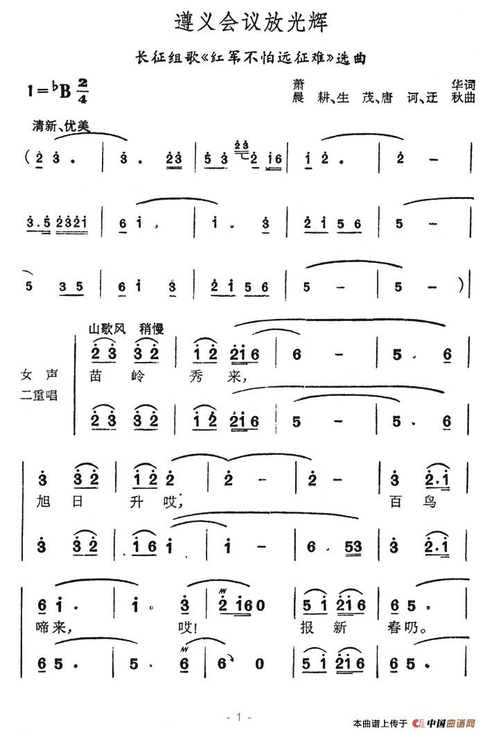 遵义会议放光辉(长征组歌《红军不怕长征难》选曲)相关五线谱