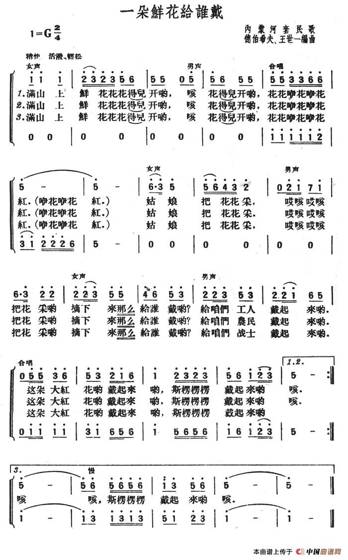 一朵鲜花给谁戴相关五线谱