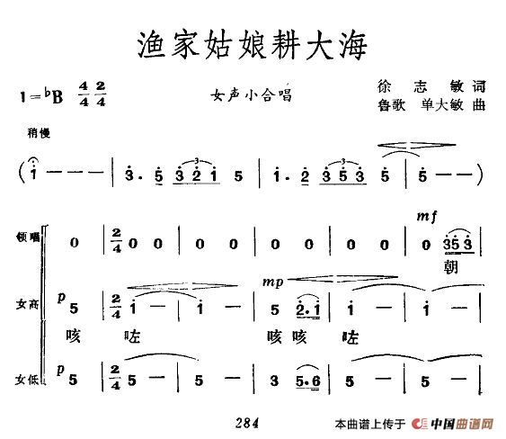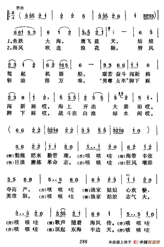 渔家姑娘耕大海相关五线谱