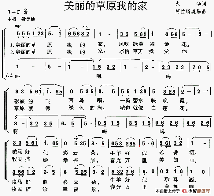阿拉腾奥勒曲谱推荐美丽的草原我的家(次中萨克斯与乐队)11-15敬祝毛主席万寿无疆(影片解说词 阿拉腾奥勒曲)草原情歌(岳晓青词 阿拉腾奥勒曲)敬爱的毛主席美丽的草原我的家草原恋歌(岳晓青词 阿拉腾奥勒曲)明天的太阳(电视剧《浴血荒原》主题曲)美丽的草原我的家美丽的草原我的家美丽的草原我的家(梦之旅三重唱版)草原欢迎你(蒙根高勒词 阿拉腾奥勒曲)等哥拜堂牧民热爱解放军民族声乐考级歌曲:美丽的草原我的家人生的歌(电视剧《离婚》插曲)母亲湖夜曲(电影《母亲湖》插曲)草原祝酒歌(刘玉忱词 阿拉腾奥勒曲、二重唱)一见钟情(陈颖波词 阿拉腾奥勒曲)美丽的草原我的家(次中萨克斯与乐队)01-05美丽的草原我的家