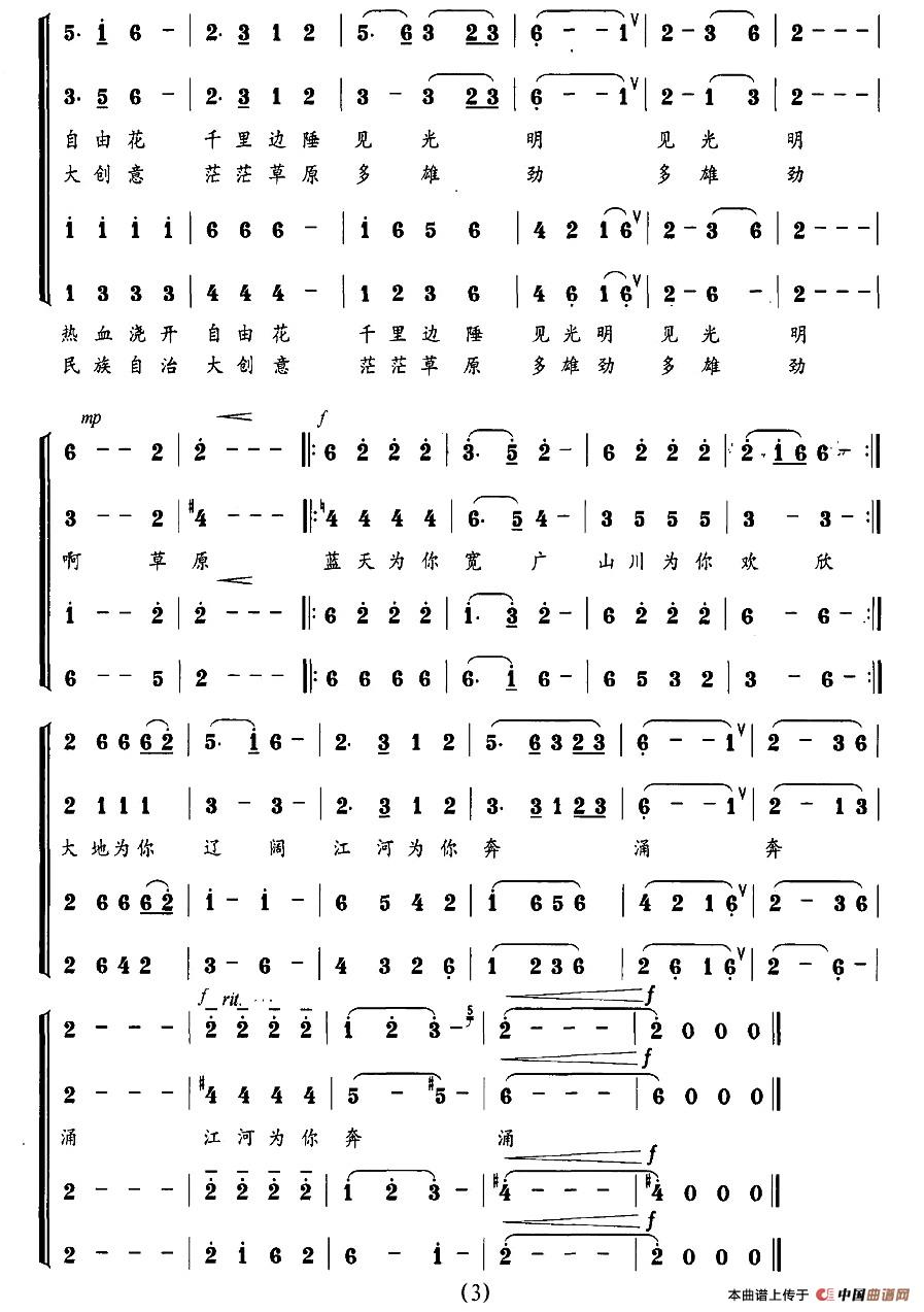 - 美丽的草原我的家合唱简谱(孟卫东编配)
