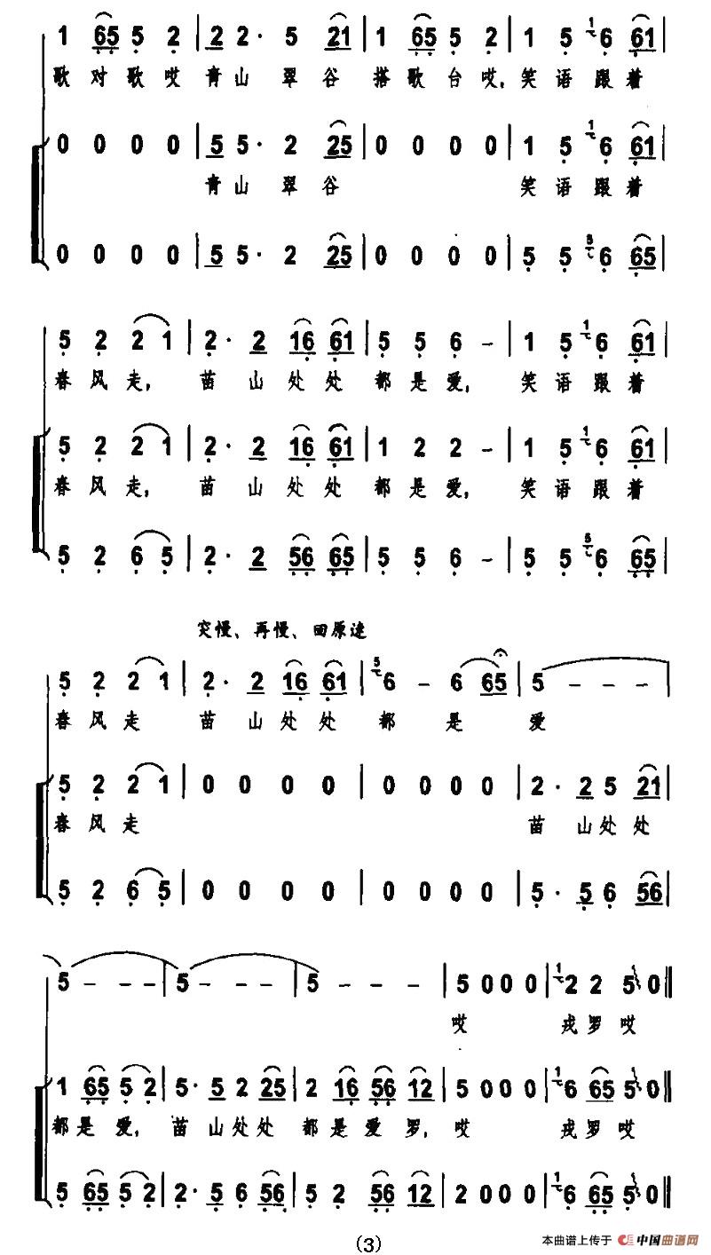苗岭花山谣(金鸿为词 马青曲、独唱+伴唱)相关五线谱