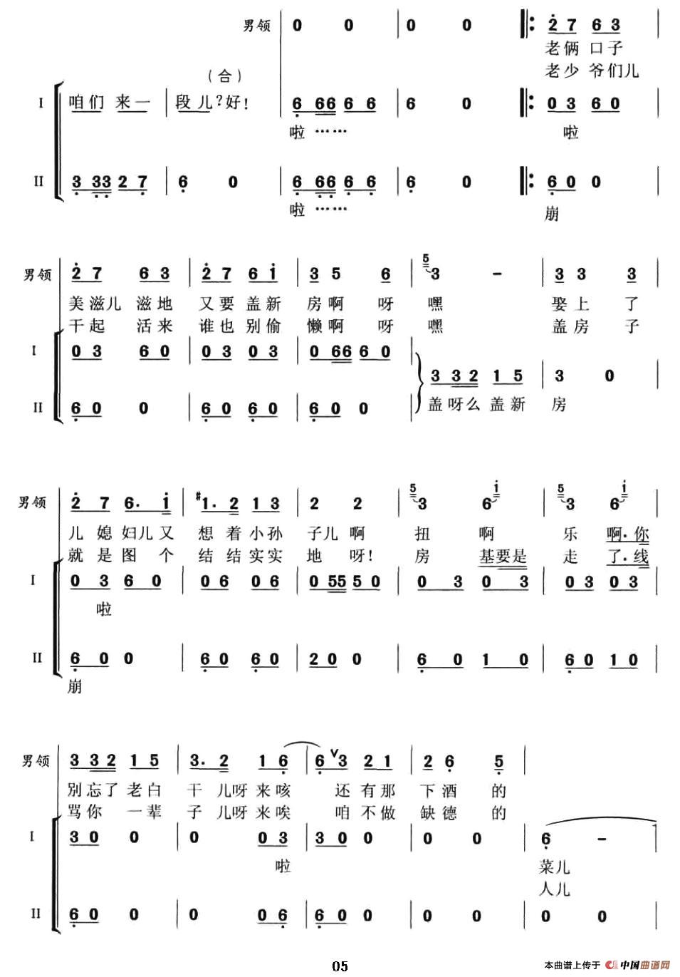 冀东夯歌(男声无伴奏风情演唱)相关五线谱