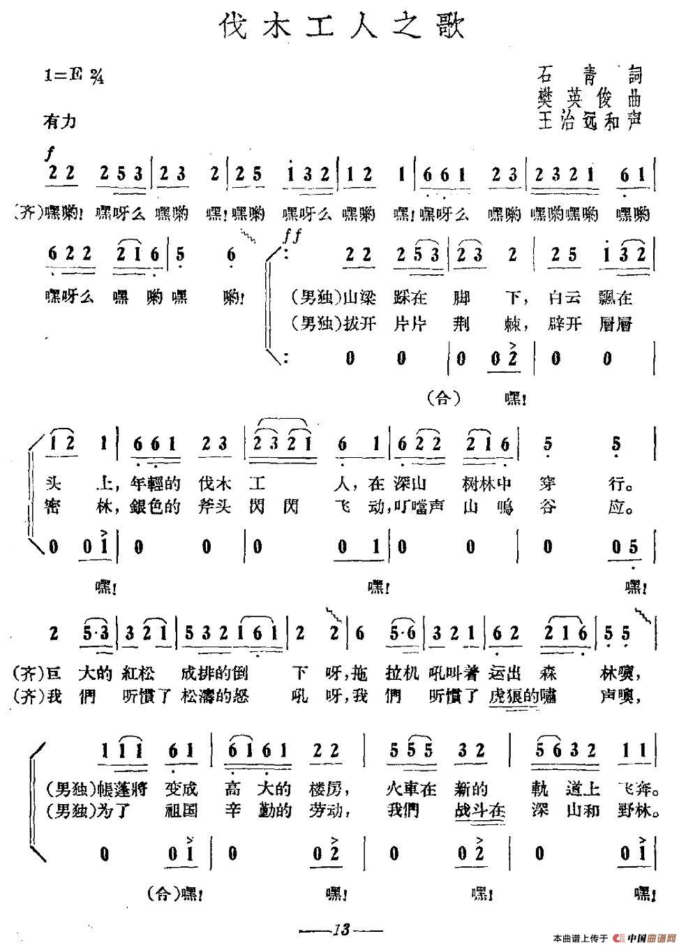 伐木工人之歌相关五线谱