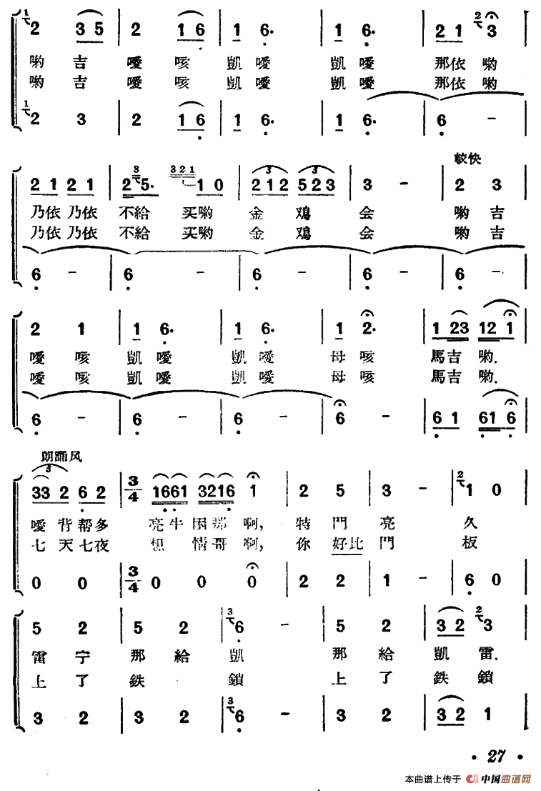 嘎吉约(贵州侗族民歌)相关五线谱
