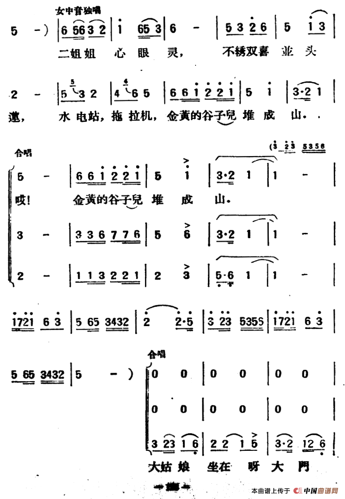 绣花歌(瀑潺词 孙云鹰改词作曲)相关五线谱