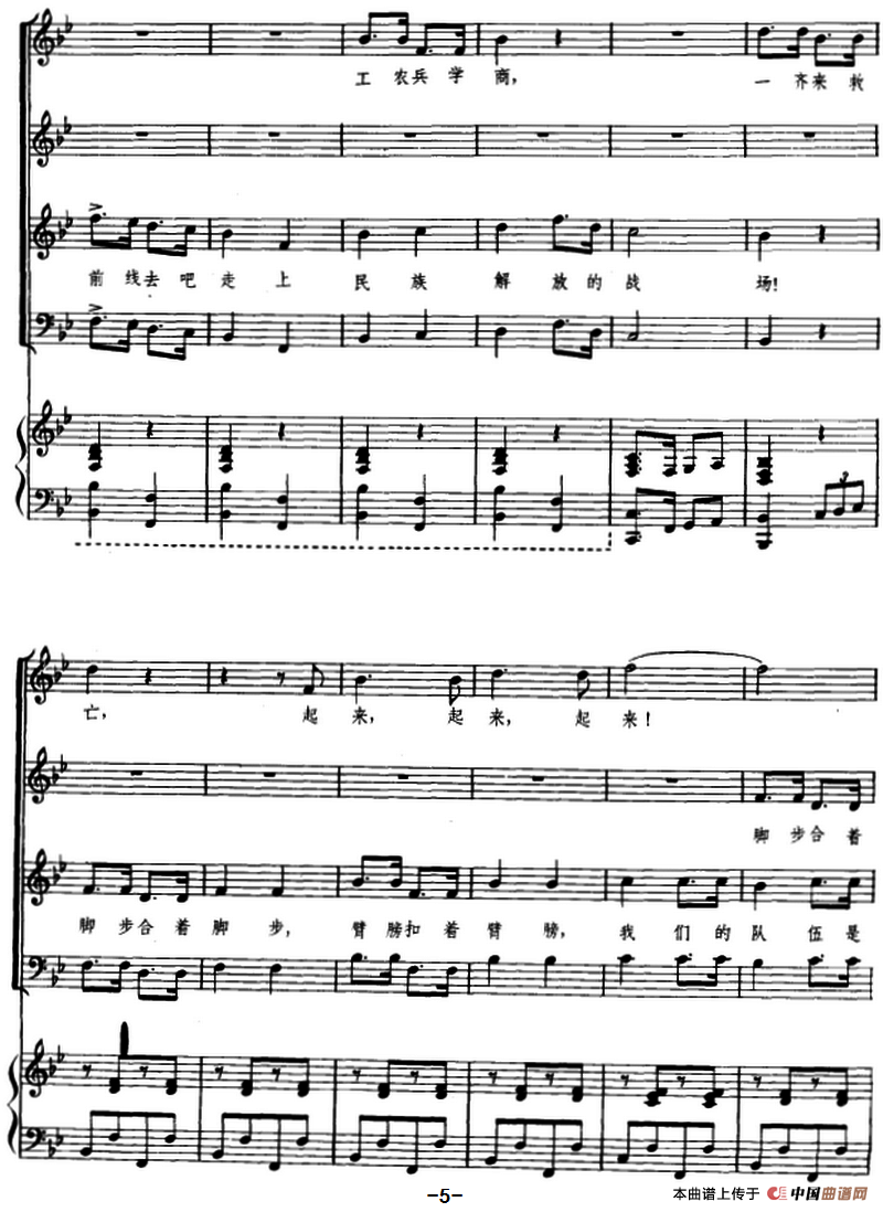 救亡进行曲(瞿希贤遍合唱版、正谱)相关五线谱