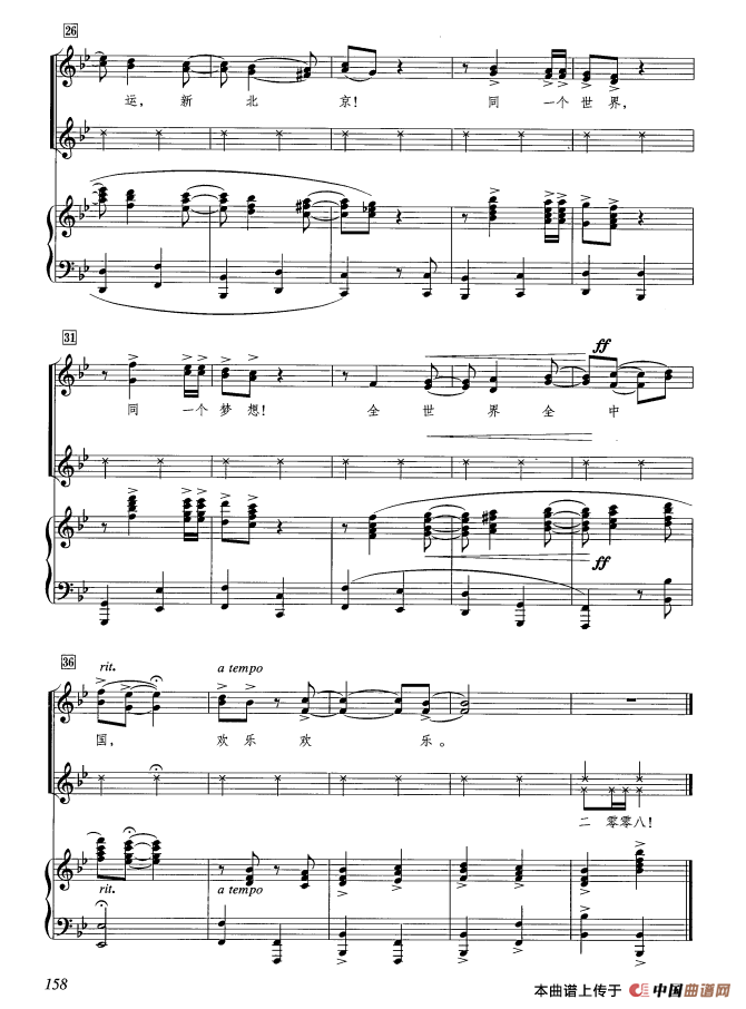 新北京 新奥运——“2008”(正谱)相关五线谱