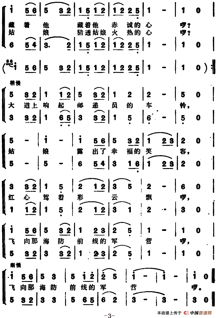 姑娘盼来了邮递员相关五线谱