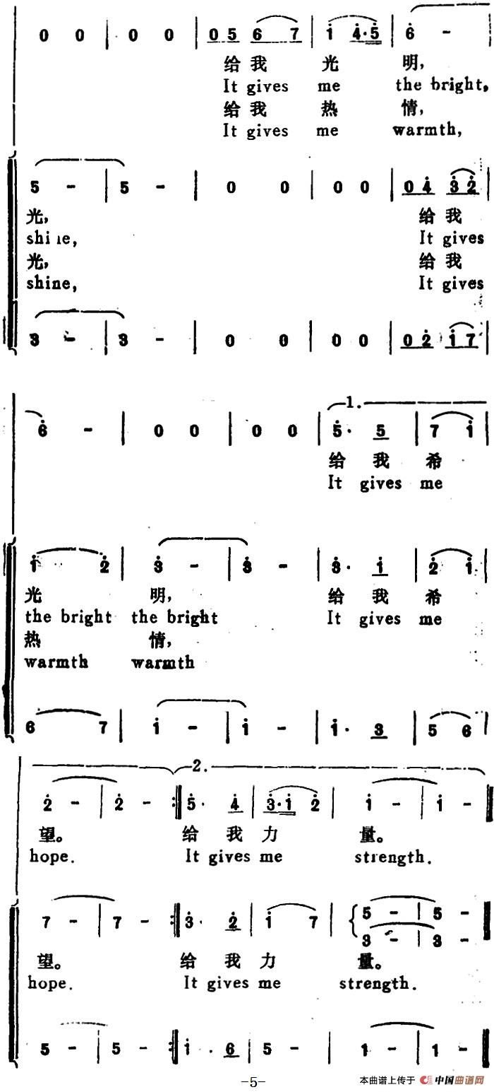 我爱阳光(I Love Sun Shine)(汉英文对照)相关五线谱