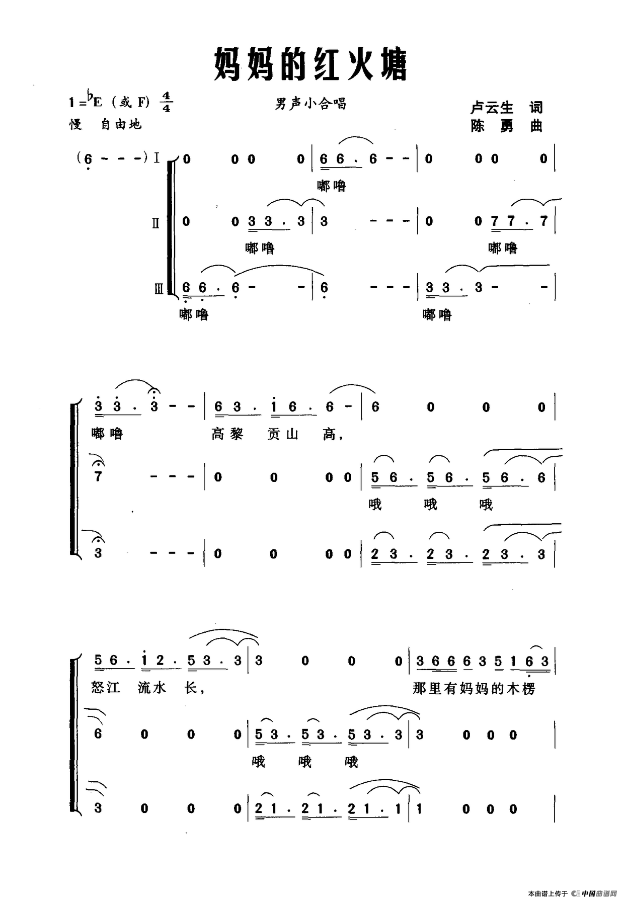 陈勇曲谱推荐彩云之南,心的向往为祖国祝福,为祖国喝彩月光恋(刘位循词 陈勇曲、正谱)山寨的夜晚(刘位循词 陈勇曲)螃蟹歌(童声合唱、陈勇编曲)寻找太阳升起的地方(正谱)火把节的火把(声乐主旋律与钢琴伴奏)芦箫情(芦箫谱)芦萧情摆呀摆(谢维耕词 陈勇曲、正谱)版纳的春雨(金鸿为词 陈勇曲、正谱)马樱花的传说挽留(邓永旺词 陈勇军曲)海恋(陈勇词曲)锦绣中华更风流虞山桂花香(徐醒蔚词 陈勇曲)一座丰碑(郑明词 陈勇曲、正谱)寻找太阳升起的地方火把节的火把彩云之南 心的向往(正谱)