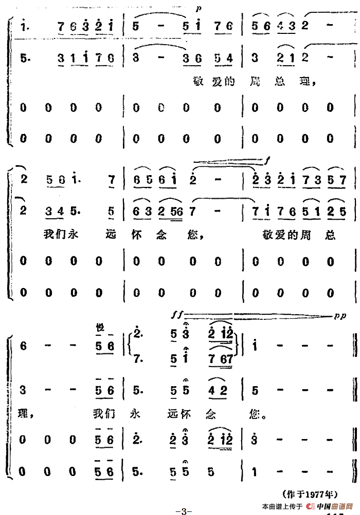 怀念周总理(陈克正词 时乐蒙、陆祖龙曲)相关五线谱