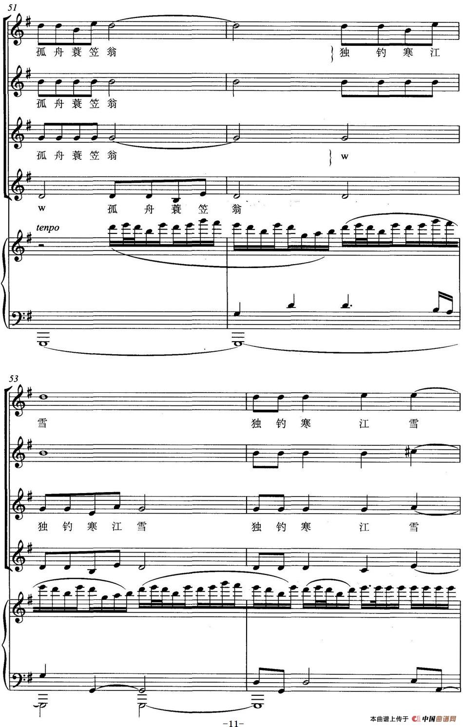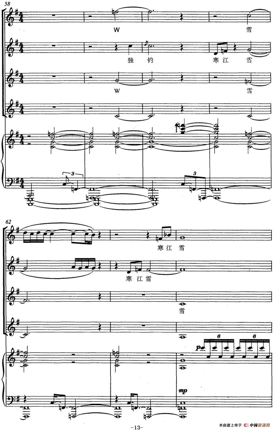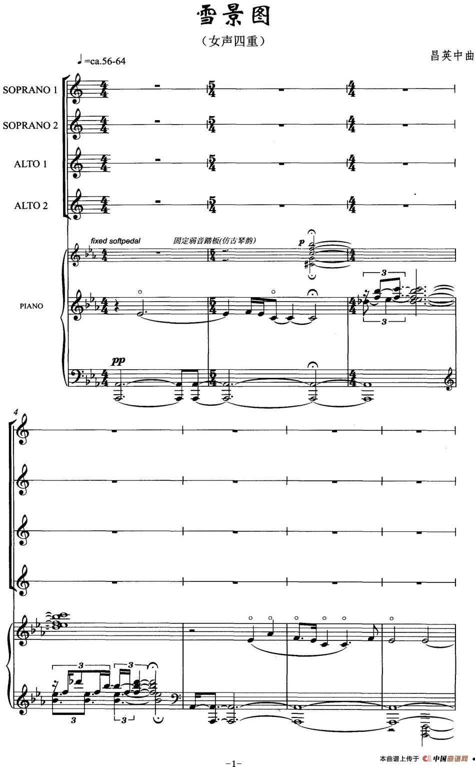 雪景图(女声四重唱、正谱)相关五线谱