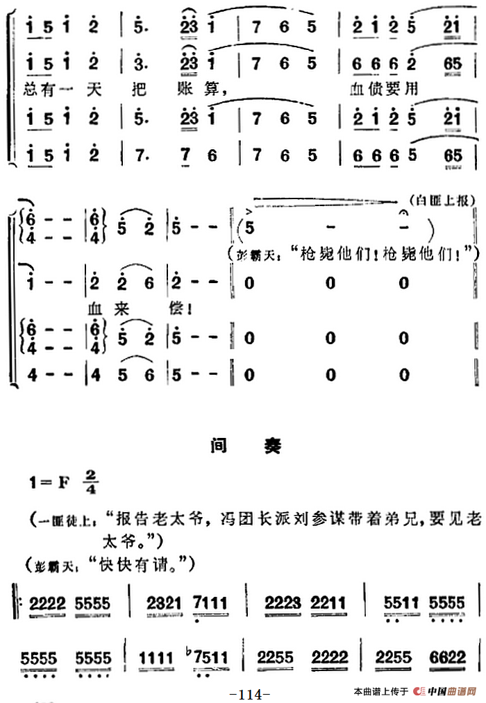 歌剧《洪湖赤卫队》全剧第六场 第一曲相关五线谱