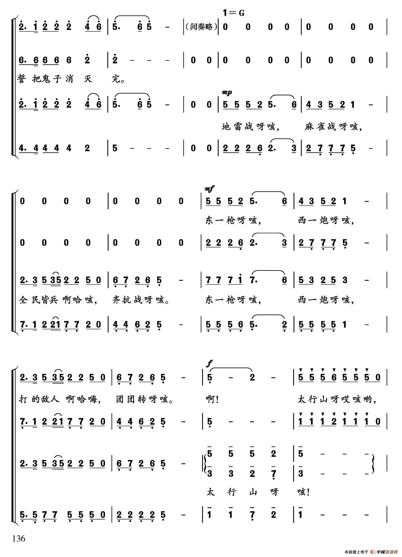 太行山相关五线谱