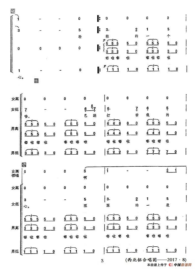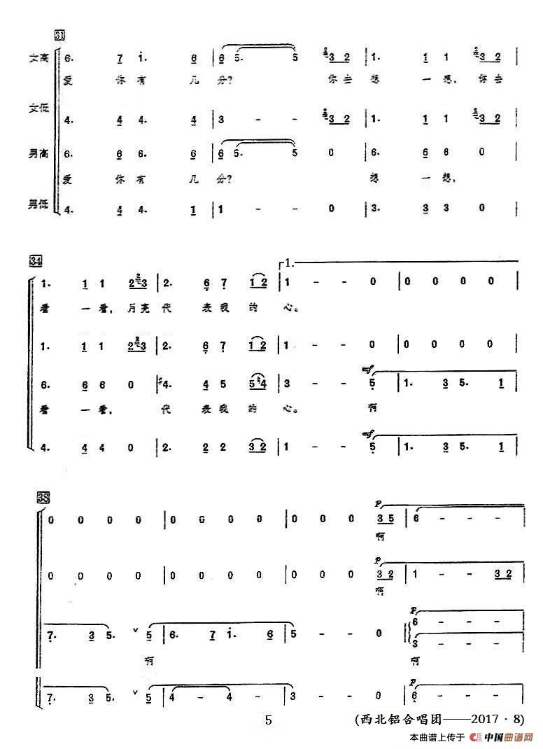 月亮代表我的心(领唱+混声合唱)相关五线谱